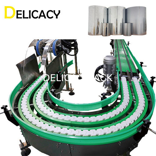 Produtos da guloseima: com o projeto profissional, a linha de produção inteira pode conseguir a substituição rápida da emenda dobro e exigências de emenda triplas, molde de expansão ajustável do reforço, cooperação precisa do trilho de guia importado e perfil combinado com o servo motor, para assegurar o fluxo rápido que transporta o sistema. O rolo oito pode cabeça da selagem e a qualidade de selagem da lata é estável e rápida. Ao mesmo tempo, a cabeça de selagem é projetada especialmente, que tem as características de baixo nível de ruído e da eficiência elevada.
